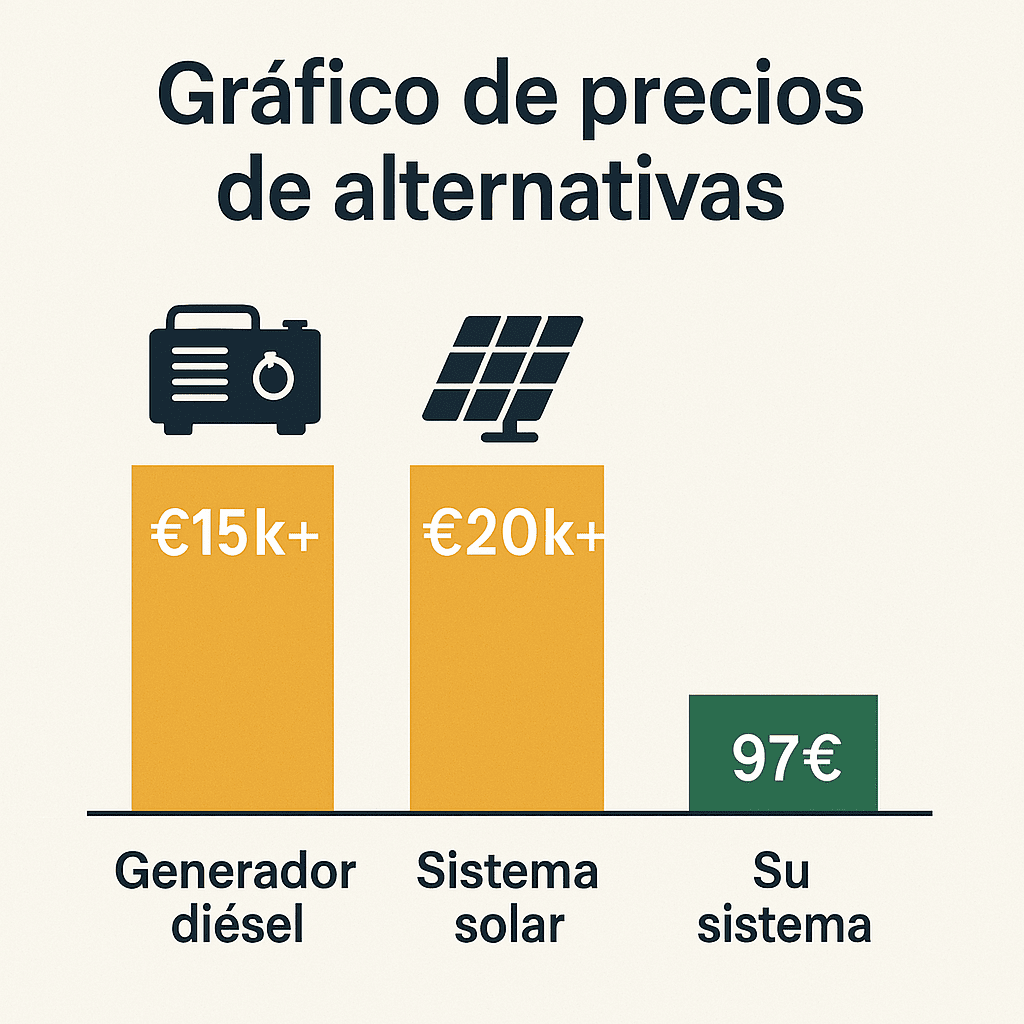 A diferencia de los generadores a gasolina, tu sistema funciona sin ruido ni humo. Nadie sabrá que tienes electricidad, y en una crisis, eso puede marcar la diferencia.